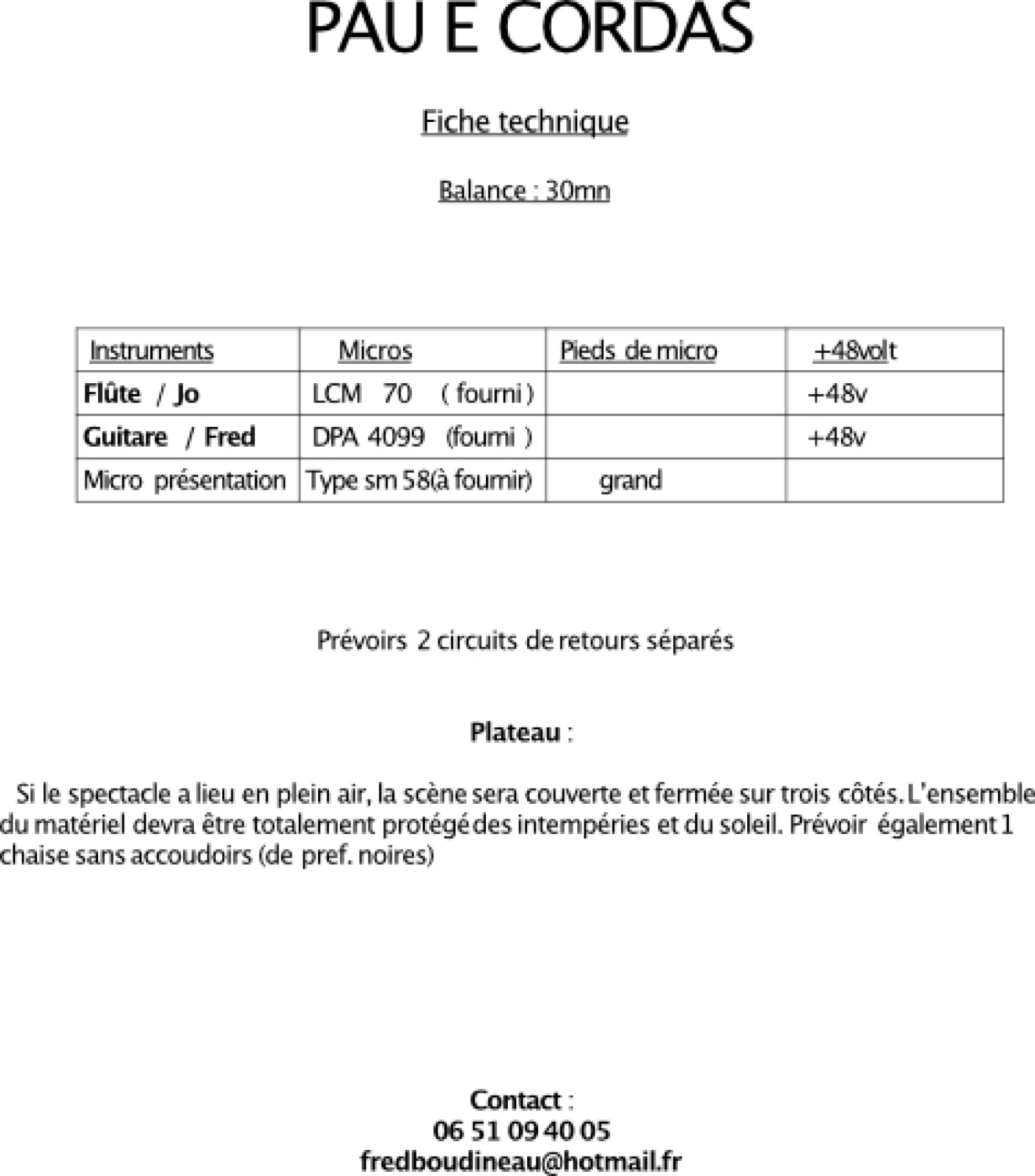 Le duo " Pau e Cordas " propose un répertoire autour de la musique brésilienne (choro, baiao, bossa nova) et des compositions influencées par la musique brésilienne.